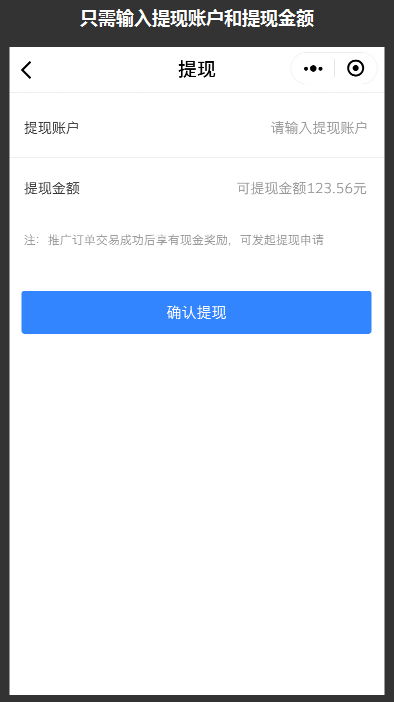 ④推廣員獲得推廣獎(jiǎng)勵(lì)后,可點(diǎn)擊“推廣員中心--提現(xiàn)按鈕”發(fā)起獎(jiǎng)勵(lì)提現(xiàn)。